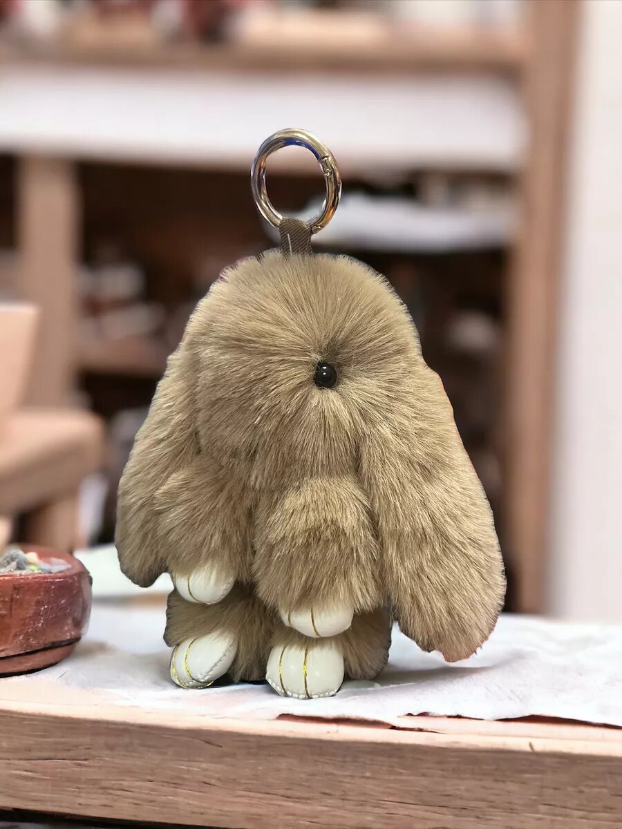 Брелок игрушка для ключей и сумок кролик из меха хаки информация:
