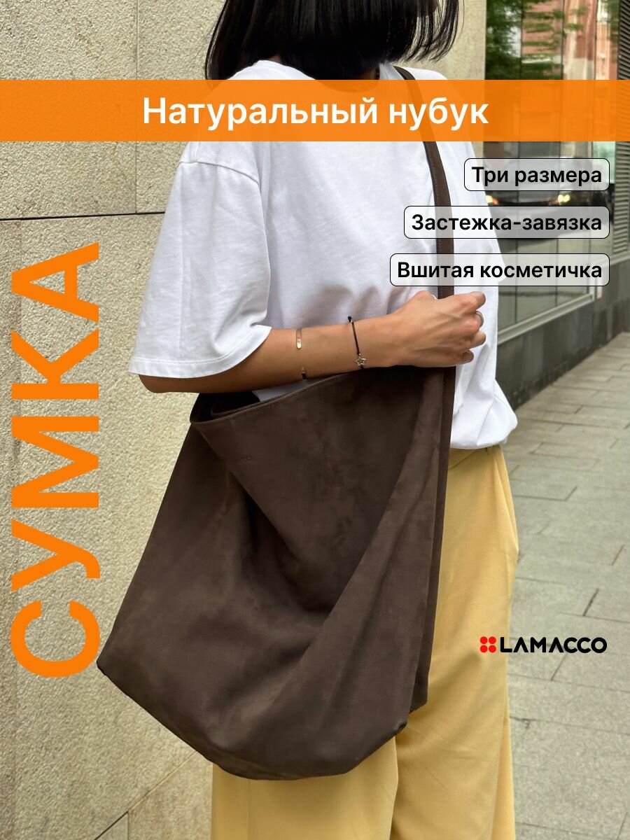 Отзывы на Сумка замшевая шоппер большой натуральная кожа , Lamacco , 8888L-XL_Темно-коричневый-нубук