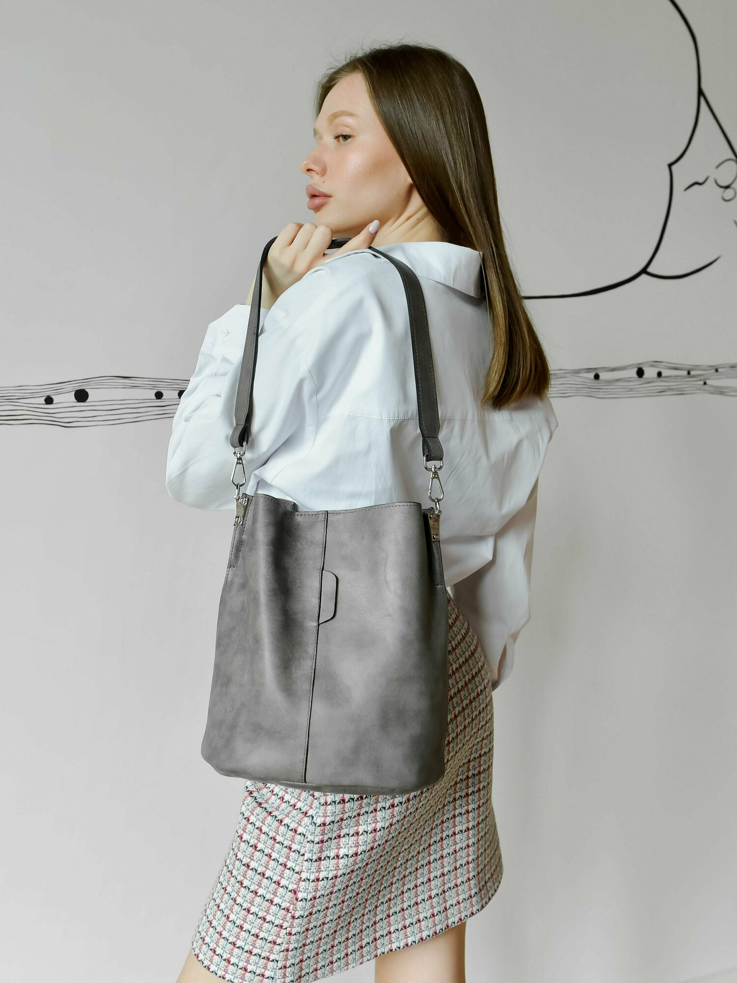 10 цен на Сумка женская на плечо натуральная кожа сумка мешок ведро , Reversal, 9829R_Светло-серый