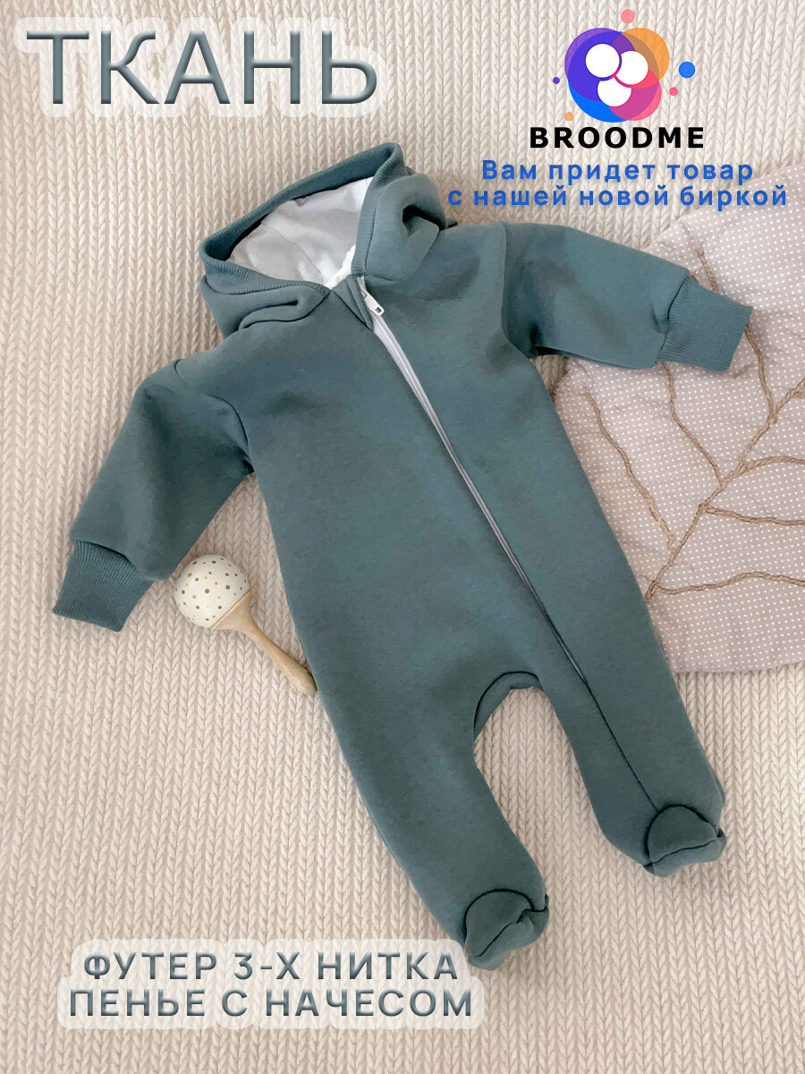 10 цен на Комбинезон для новорожденных утепленный футер с начесом 74 см зеленый