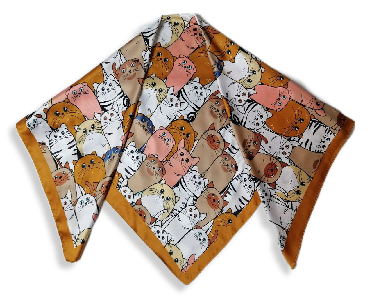 Платок Russian Souvenirs Русские сувениры Петербургские котики охра / Платок на голову / Шейный платок / Платок на сумку / Косынка на пляж