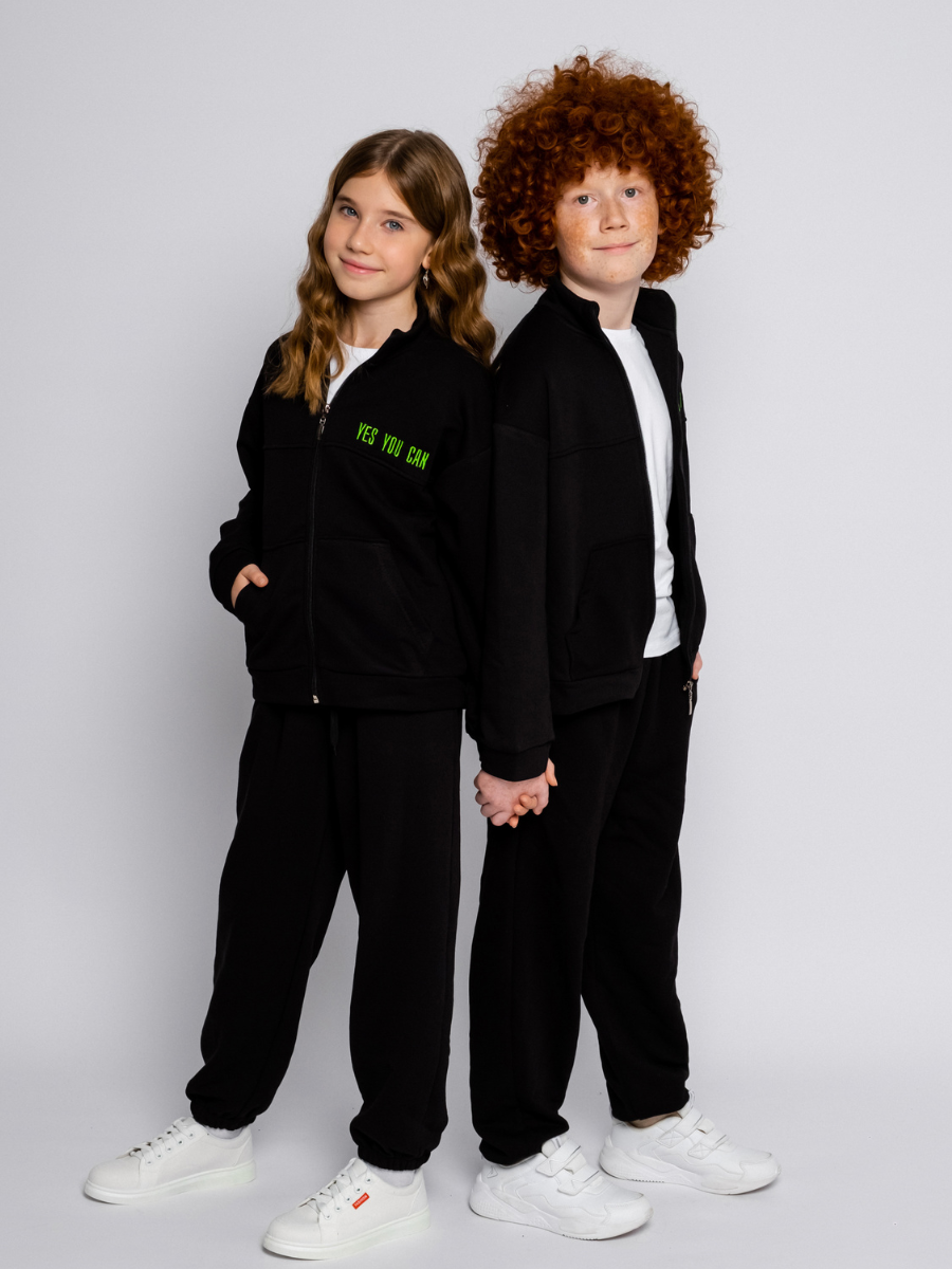 Костюм спортивный для физкультуры на молнии черный Вилли, 122-128 2 400 ₽