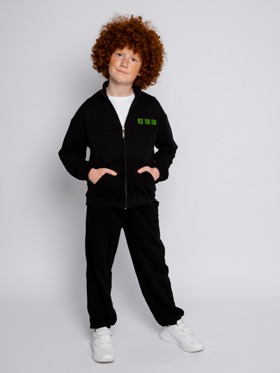 Костюм спортивный для физкультуры на молнии черный Вилли, 122-128 2 400 ₽