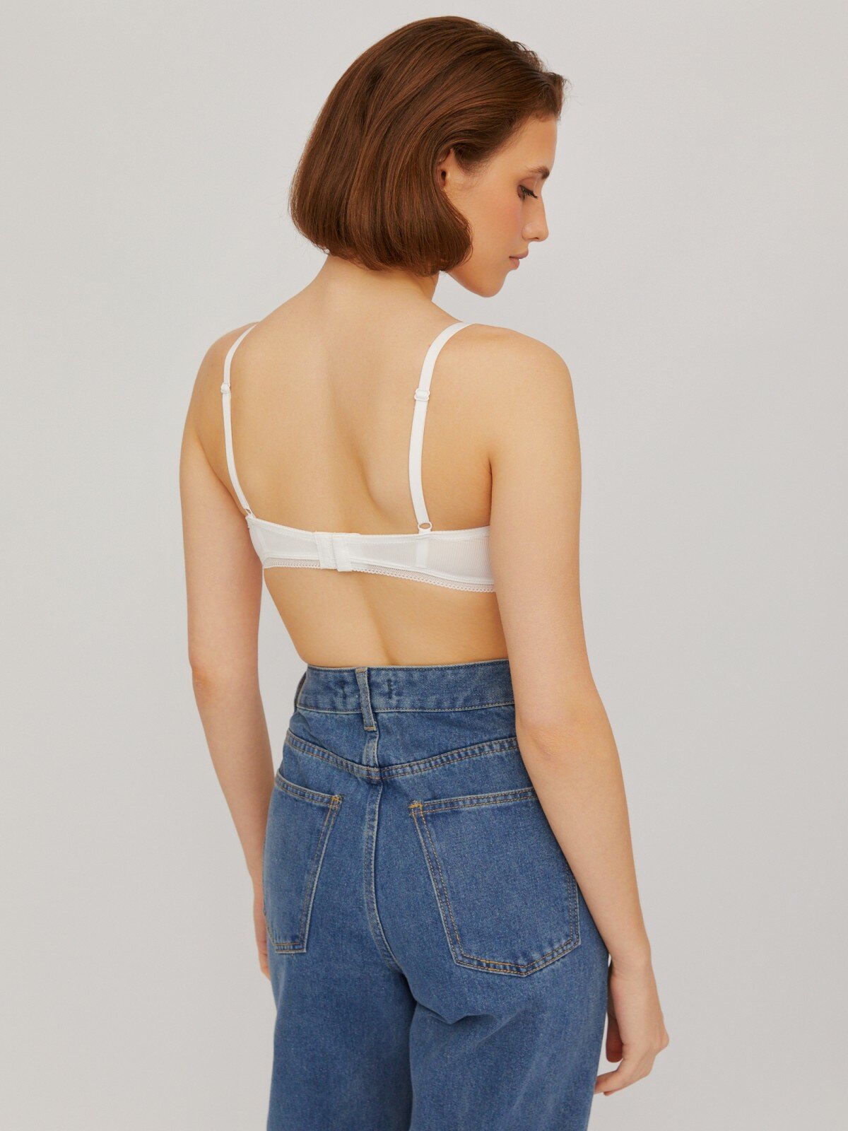 Бюстгальтер без косточек с кружевной отделкой, цвет белый, размер 75C 024319W59075 информация: