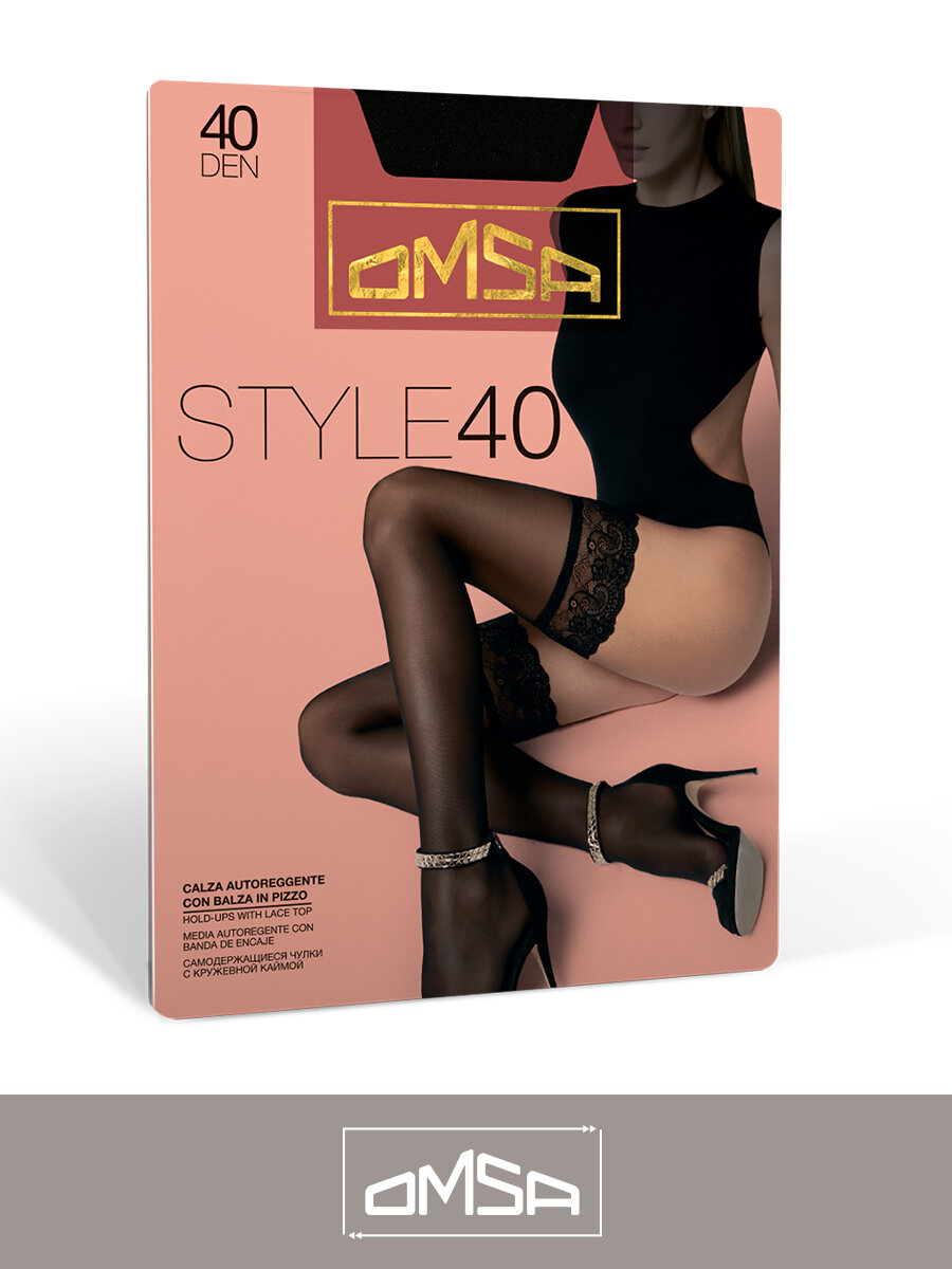 Чулки женские OMSA STYLE 40 полупрозрачные с элегантной кружевной каймой на силиконовой основе, цвет Nero, размер 3 информация: