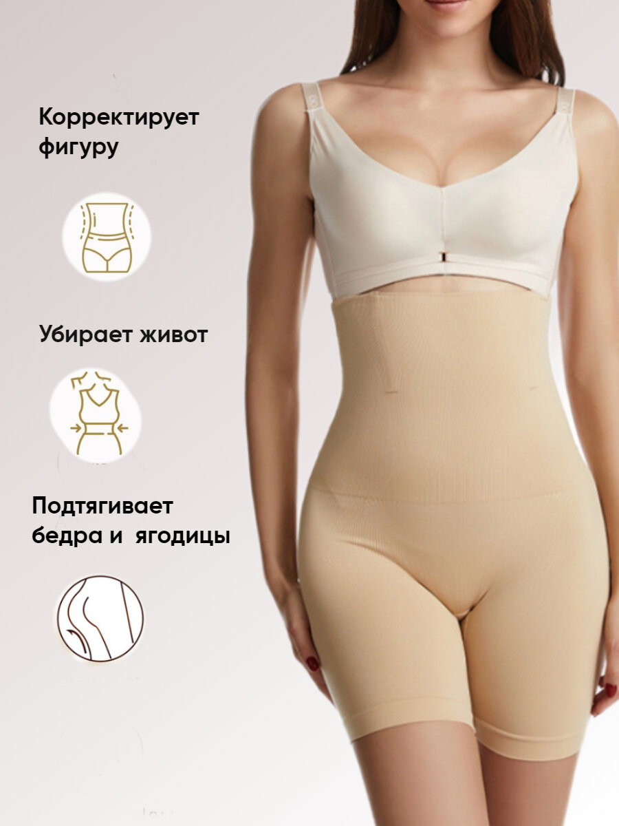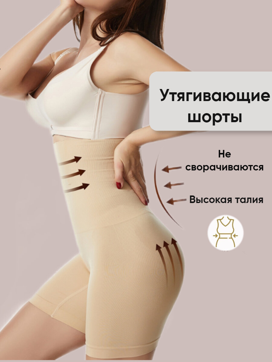 10 цен на Утягивающие трусы женские с высокой талией корректирующие , шорты, размер 50-52, цвет: бежевый