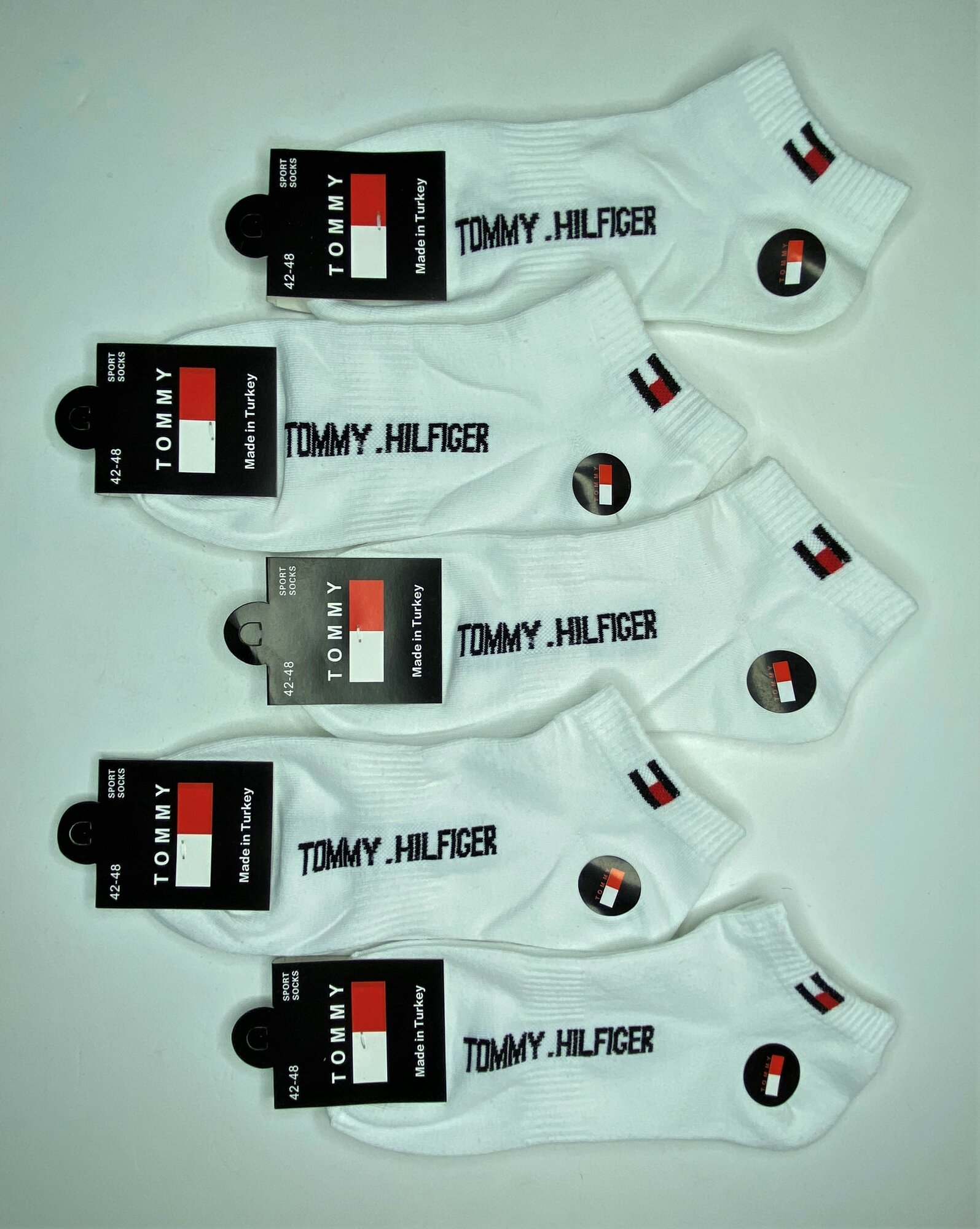 Носки спортивные низкие Tommy мужские, размер 40–44,5 пар,Белые. информация: