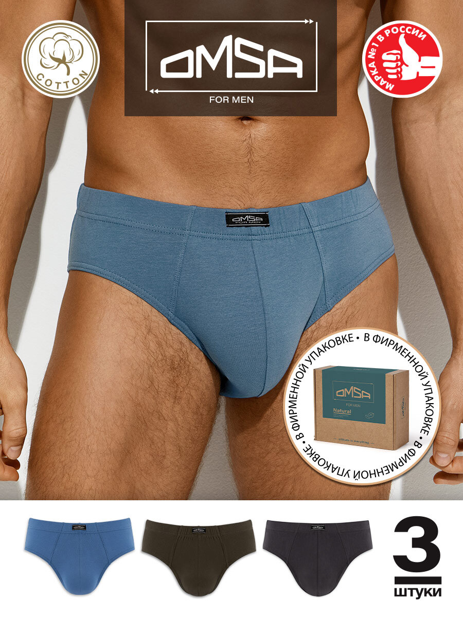 Трусы мужские OMSA OmB 1223 Слипы с закрытой резинкой, COTTON Grigio Scuro/Militari/Jeans 44(S) комплект 3шт 1 399 ₽