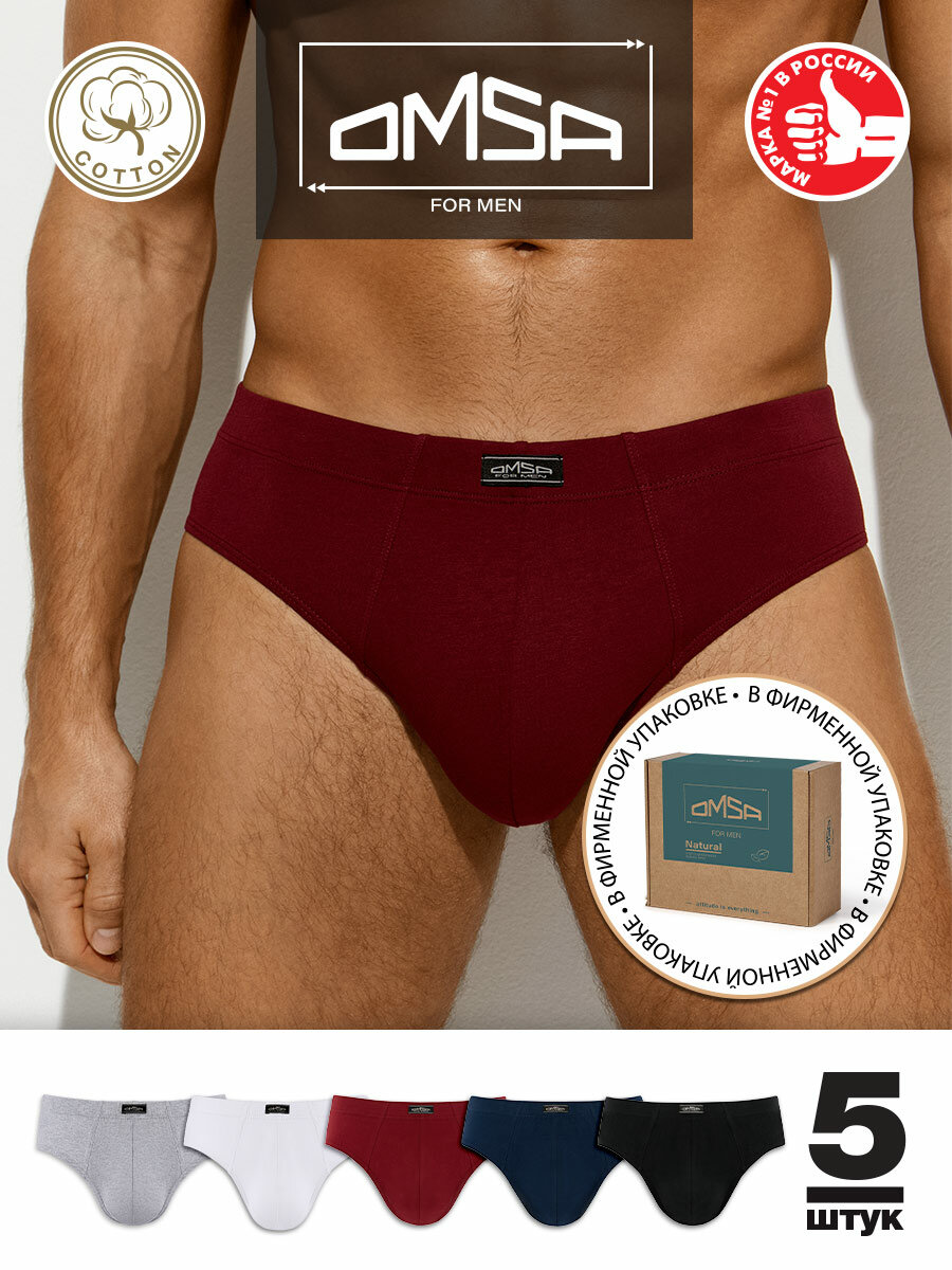 Трусы - слипы мужские OMSA OmB 1223 с закрытой резинкой комплект 5 пар Militari/Jeans/Bianco/Bordo/Blu scuro 44(S) 1 999 ₽