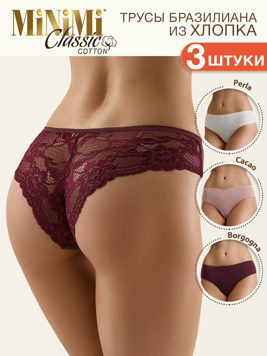 10 цен на Трусы женские MINIMI Б_MINIMI BO261 Brasiliana Borga/Cacao/Perla, размер 42 комплект 3 шт