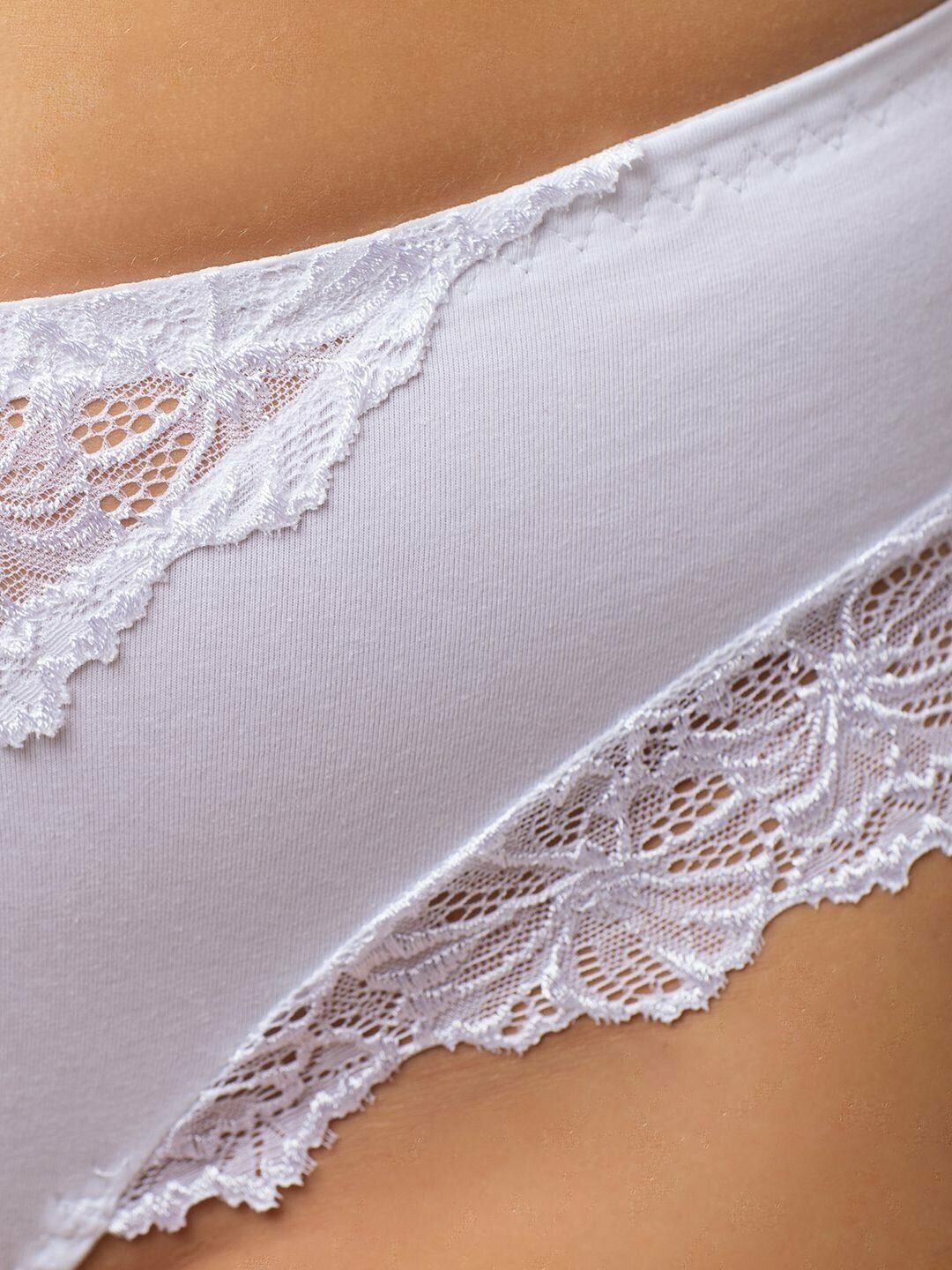 10 цен на Женские трусы слипы, макси средней посадки из хлопка с кружевом Alla Buone 2125AB_белый_52