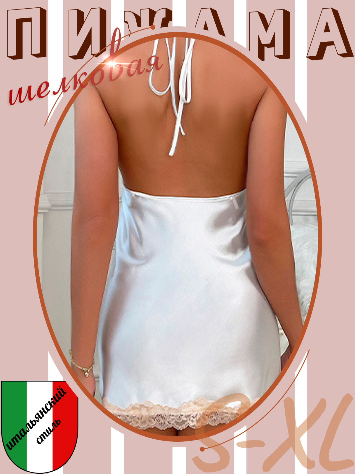 10 цен на Пижама женская ледяной шелк, белая - XL