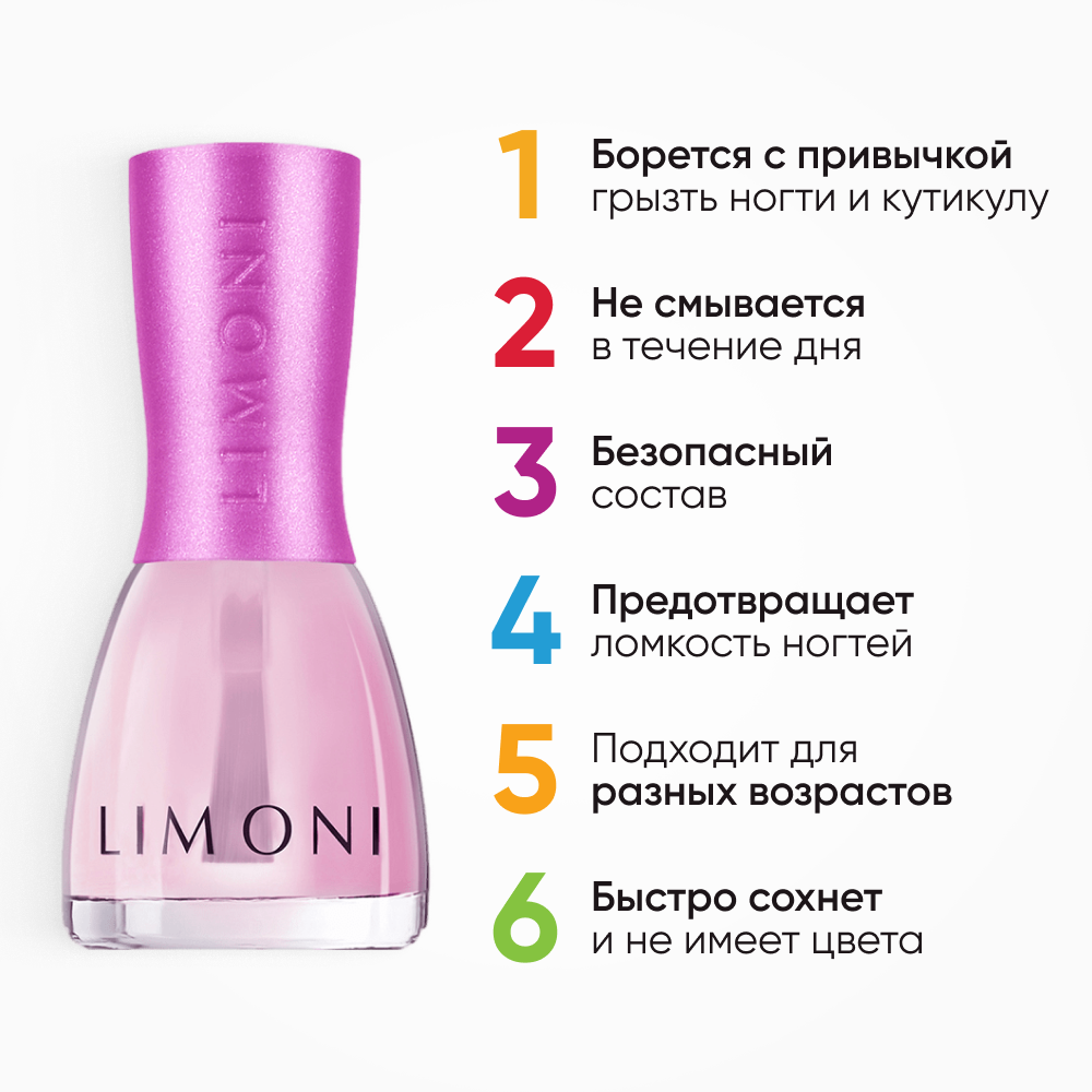 LIMONI Детский лак для ногтей против обгрызания "Некусайка" прозрачный, 7 мл информация: