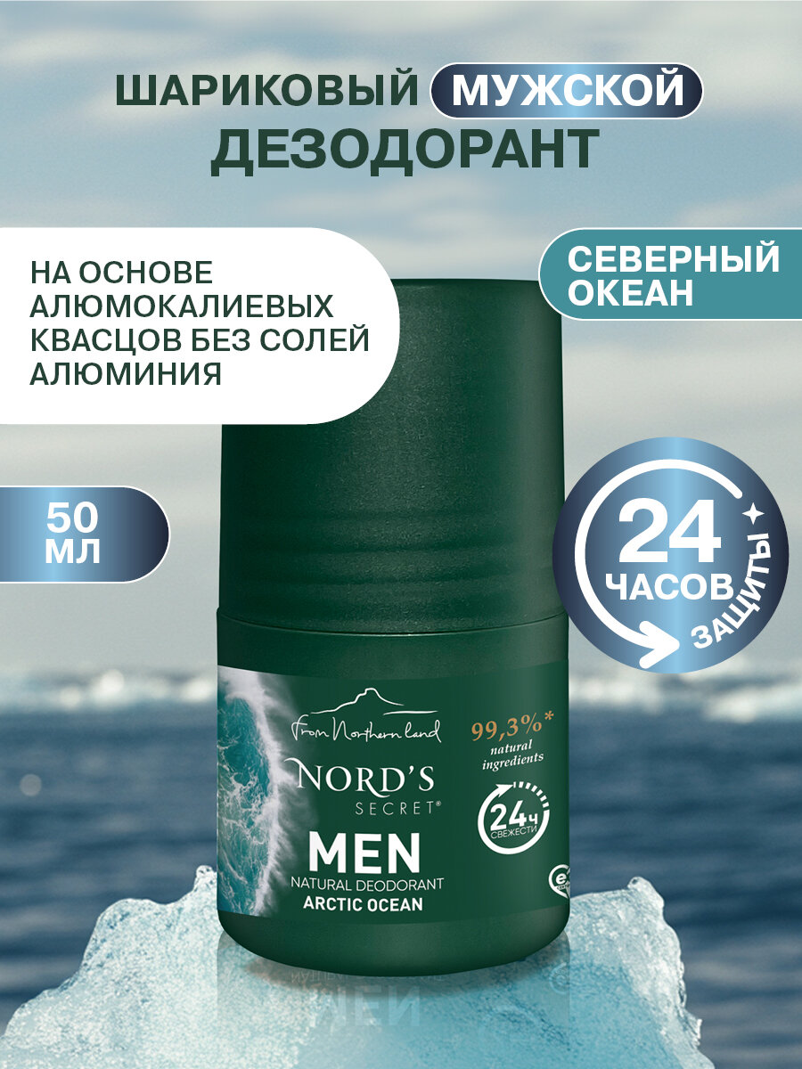 NORD'S SECRET Натуральный Дезодорант антиперспирант роликовый для мужчин северный океан, 50 мл/ Для деликатного ухода за кожей от пота и запаха. информация: