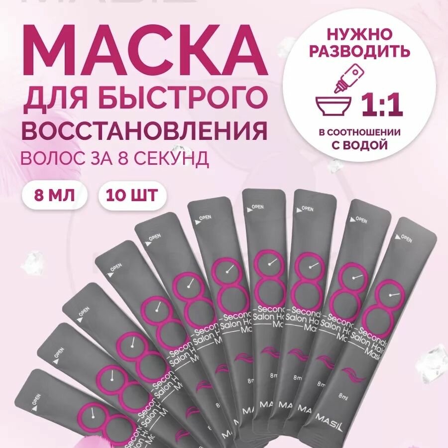 10 цен на Masil Маска для волос салонный эффект за 8 секунд, Маска филлер для волос увлажняющая профессиональная 8 секунд масил, набор саше 10штх8мл Корея