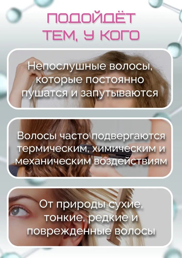 | Тип волос | вьющиеся / для всех типов / жирные / жирные у корней и сухие на кончиках / наращенные / нормальные / окрашенные / осветленные / седые / сухие / тонкие и поврежденные / чувствительная кожа головы |