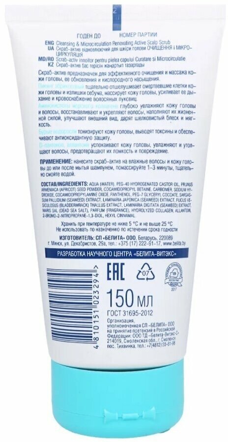 Белита скраб-актив для кожи головы обновляющий Очищение и микроциркуляция 150 мл информация: