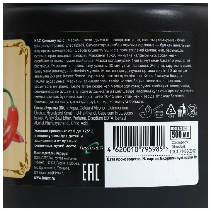 тимекс_компл._naturalis_маска д/волос 500 мл_с перцем 3в1 (против выпад., стим. роста, укреп.) 20000 информация: