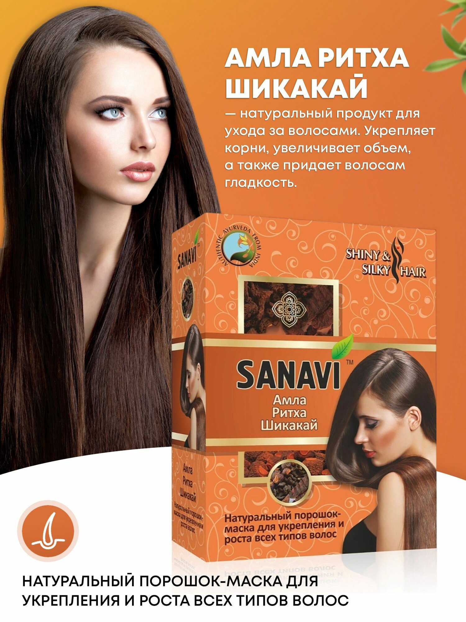 Маска порошок Sanavi Амла, Ритха, Шикакай натуральная для укрепления и роста всех типов волос, 100 г информация: