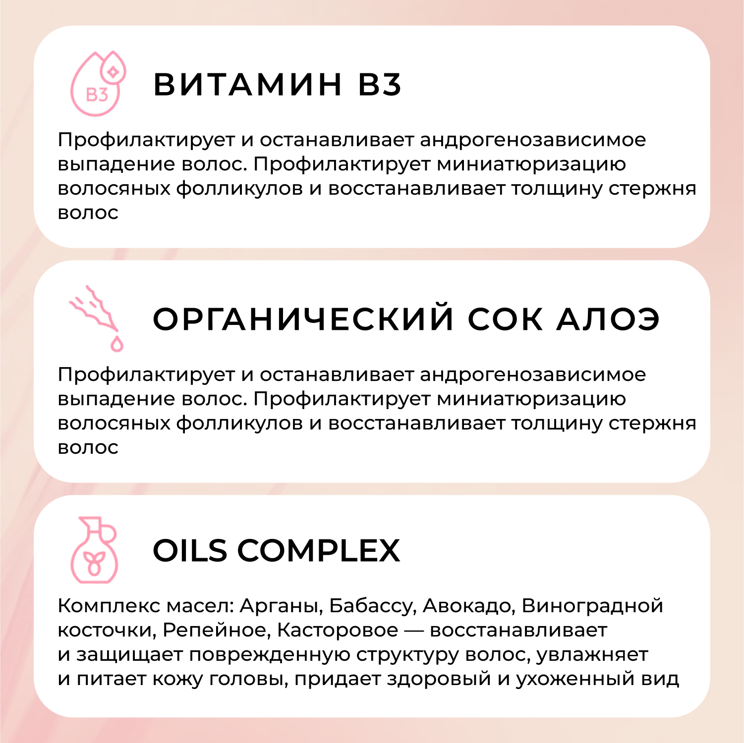 | Активный ингредиент | биотин / витамин A / витамин E / кератин / коллаген / кофеин / ниацинамид / пантенол |