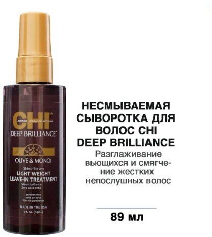 CHI Deep Brilliance Shine Serum Light Weight Leave-In Treatment Несмываемая сыворотка-сияние для волос, 89 мл