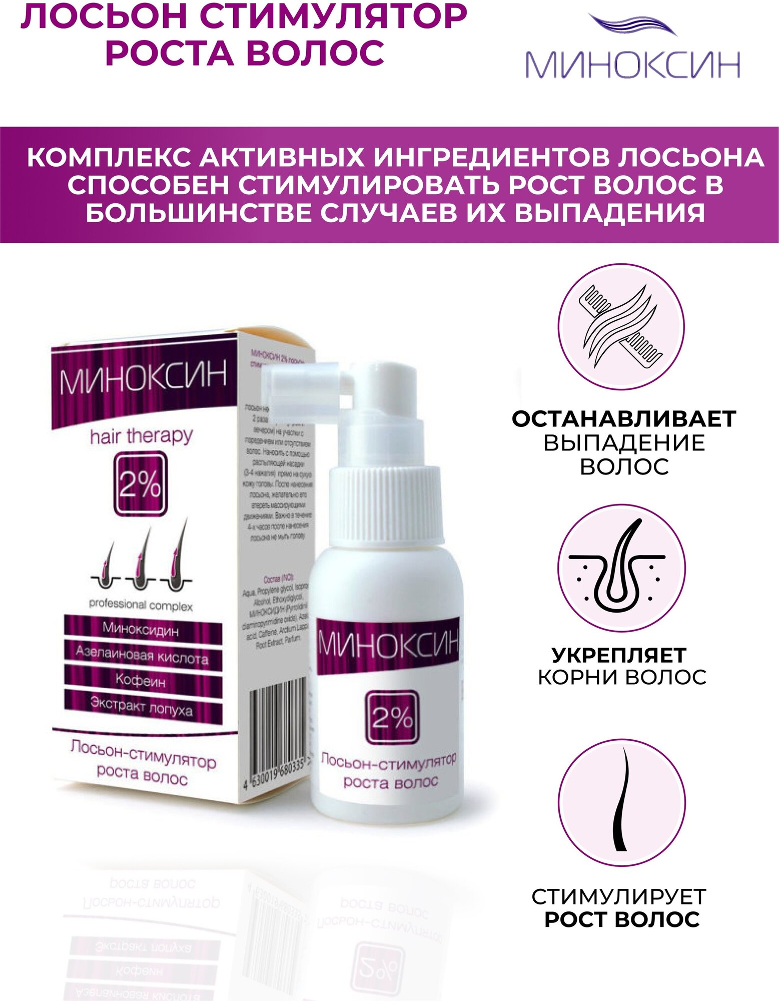 Миноксин 2% лосьон-стимулятор роста волос 50мл информация: