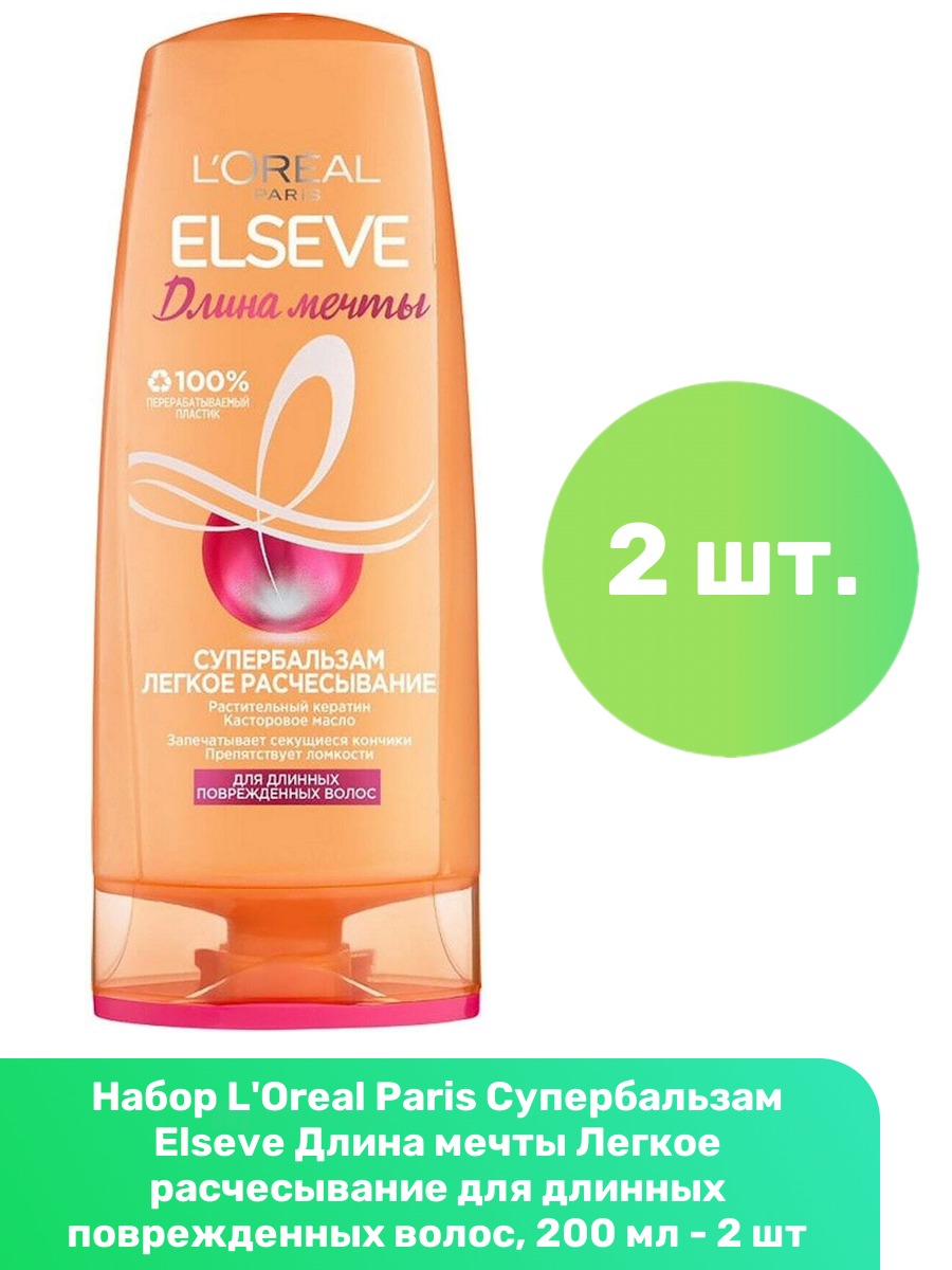 L'Oreal Paris Супербальзам Elseve Длина мечты Легкое расчесывание для длинных поврежденных волос, 200 мл - 2 шт информация: