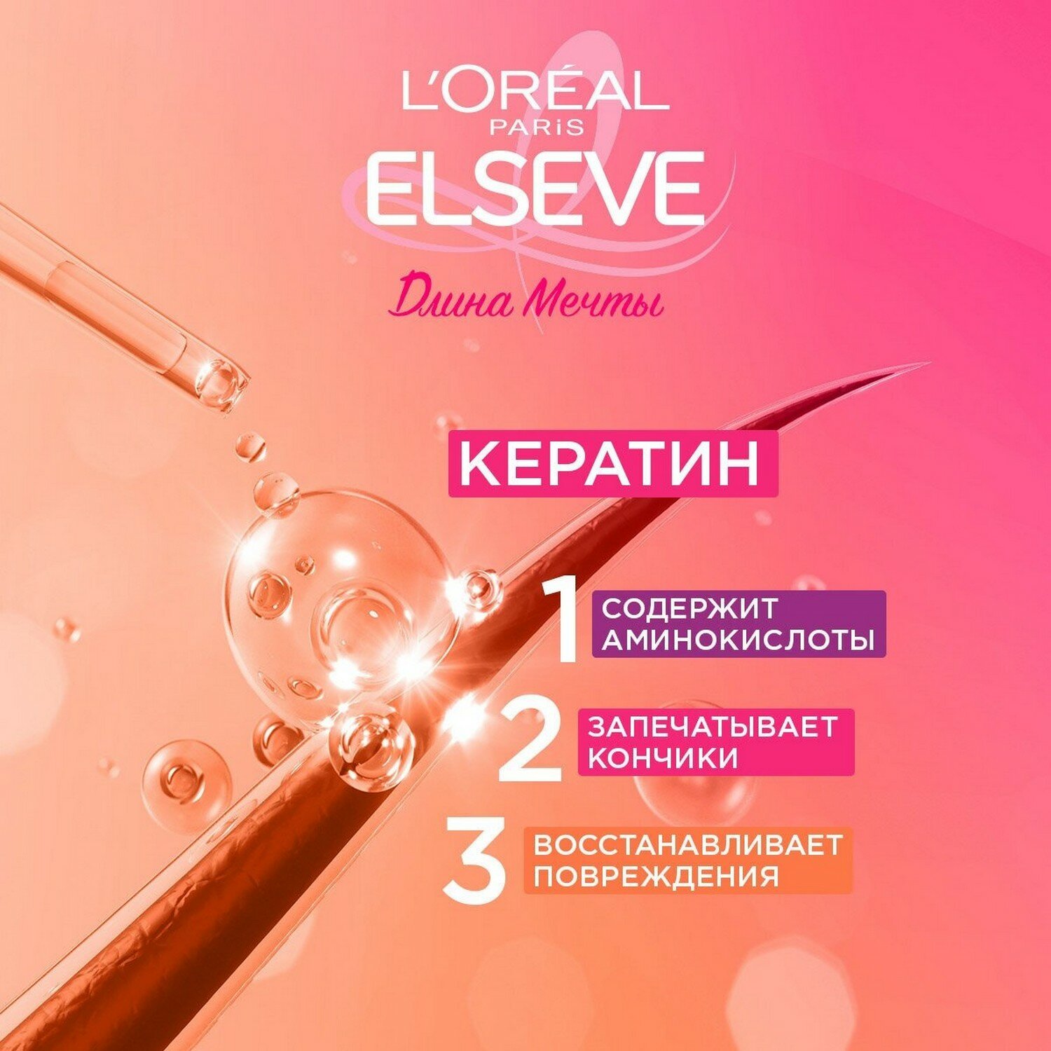 | Активный ингредиент | витамин B5 / витамины группы B / гиалуроновая кислота / глицерин / кератин / пантенол / протеины / цетримониум хлорид |
