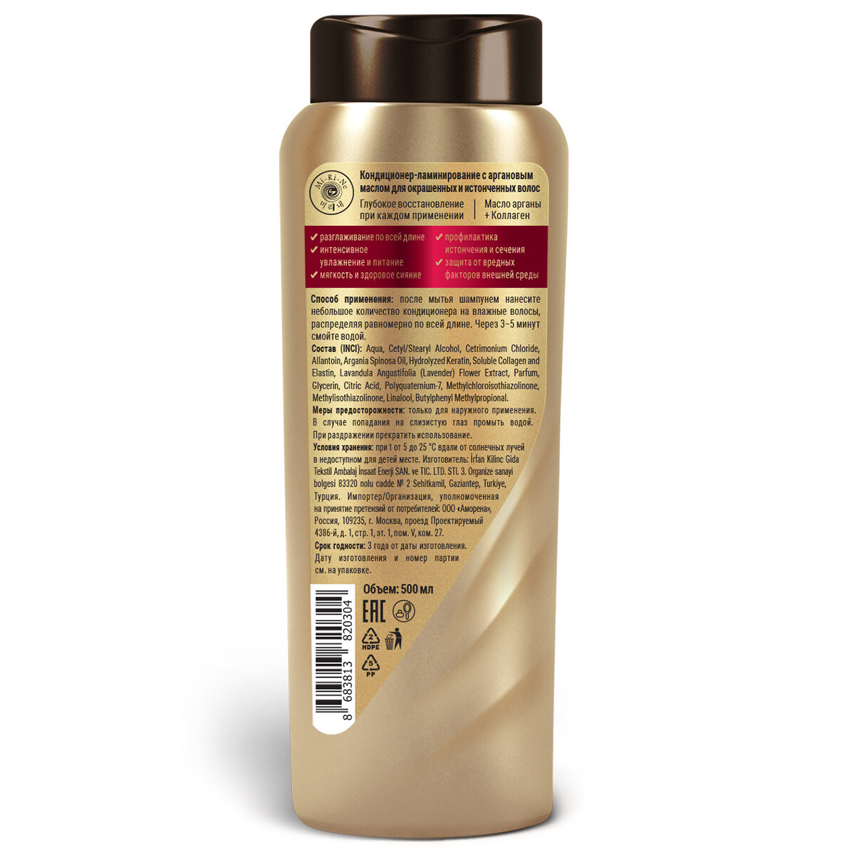 0304 Кондиц.-ламинир. с арган. мас. д/окр. и истонч. волос, 500 мл