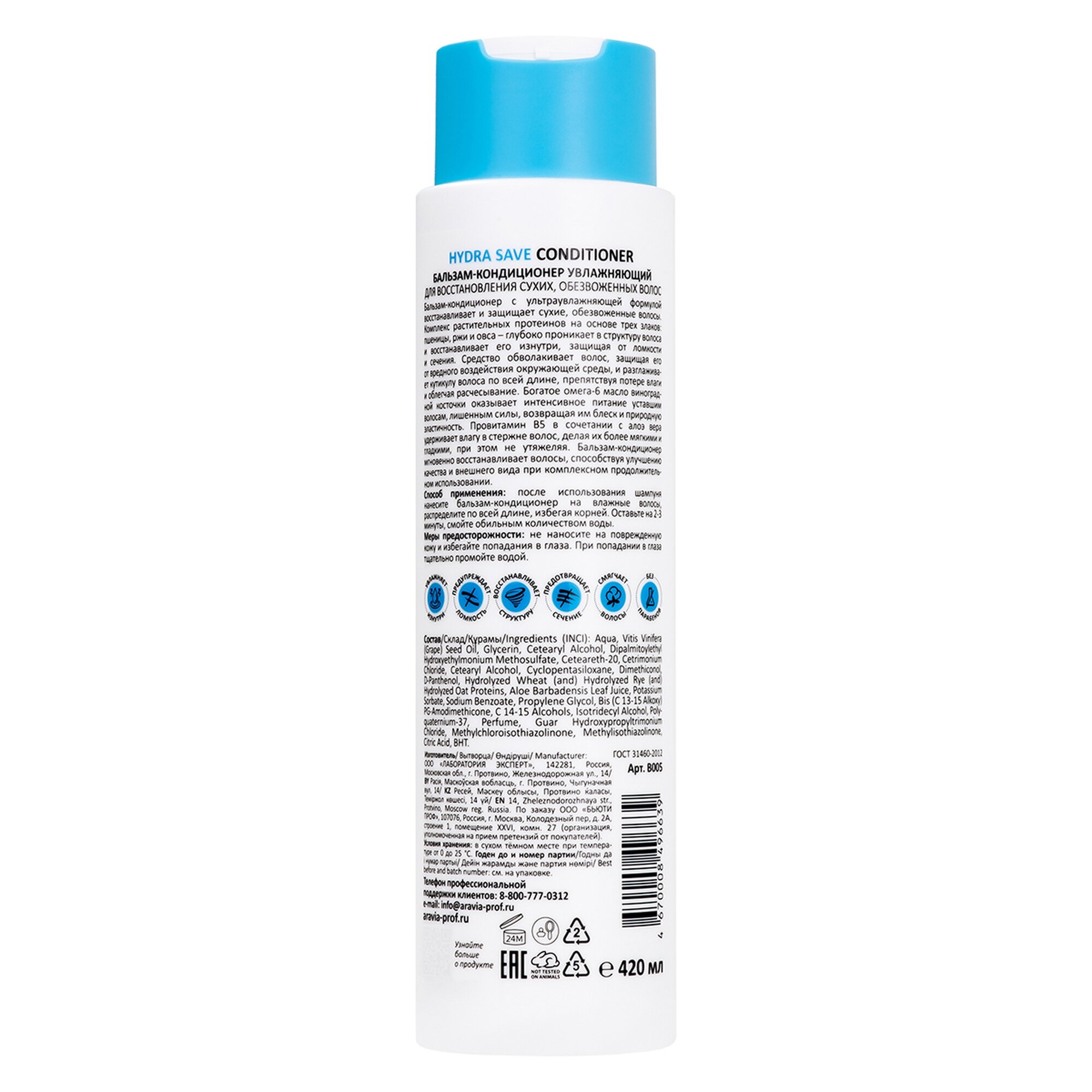 ARAVIA Бальзам-кондиционер увлажняющий для восстановления сухих, обезвоженных волос Hydra Save Conditioner, 420 мл. информация: