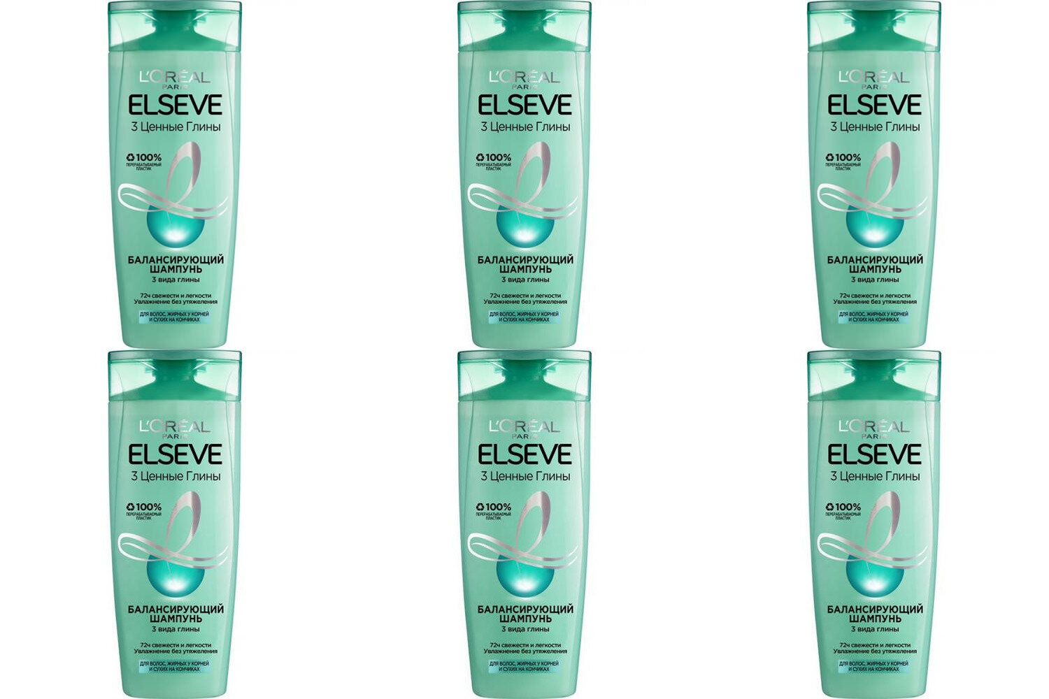 10 цен на L'Oreal Paris Шампунь балансирующий Elseve "3 ценные глины" для волос, жирных у корней и сухих на кончиках, 400 мл, 6 шт.