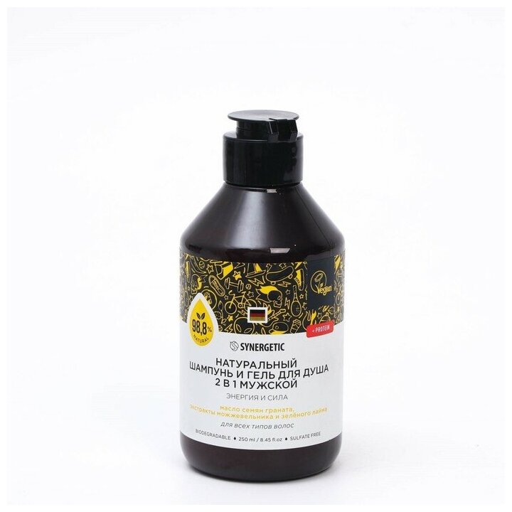 10 цен на Synergetic Натуральный бессульфатный шампунь и гель для душа 2 в 1 мужской Энергия и сила 250 мл