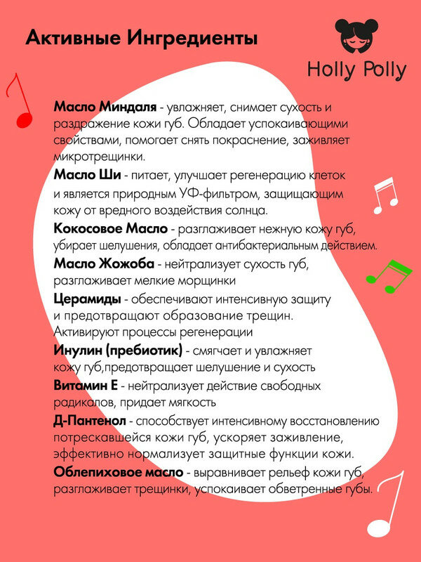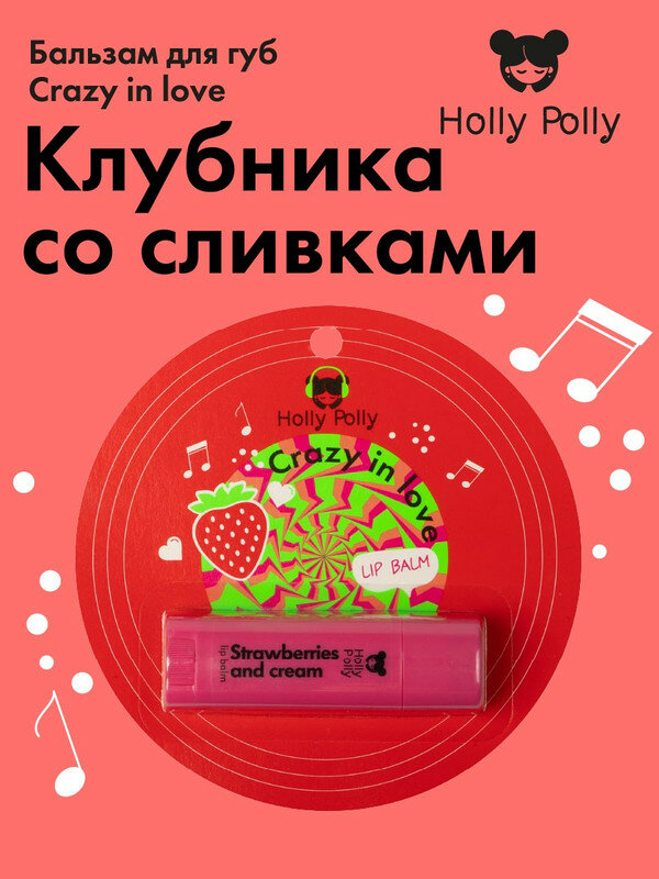 Бальзам для губ HOLLY POLLY Crazy in Love "Клубника со сливками", 4,8 г информация: