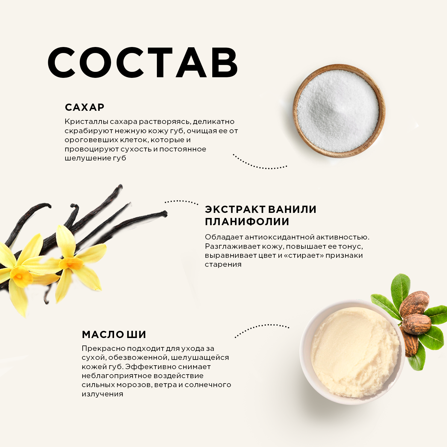 | Состав | Sugar (Sucrose), Butyrospermum Parkii (Shea) Butter, Petroleum Jelly, Simmondsia Chinensis (Jojoba) Seed Oil, Argania Spinosa Oil, Tocopherol, Caprylyl Glycol, Phenoxyethanol, Flavor, Vanilla Planifolia (Vanilla) Fruit Extract, Pentaerythrityl Tetra-Di-T-Butyl Hydroxyhydrocinnamate, Isopropyl Titanium Triisostearate, may contain (+/-) Yellow 6 Lake, Yellow 5 Lake. |