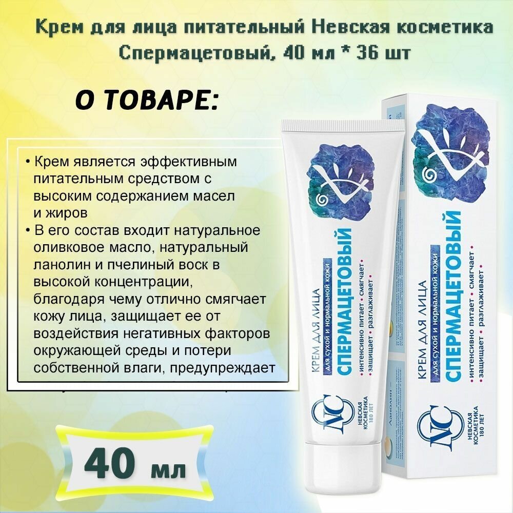 Спермацетовый Невская Косметика крем для лица для сухой и нормальной кожи, 40мл (36шт в упаковке) информация: