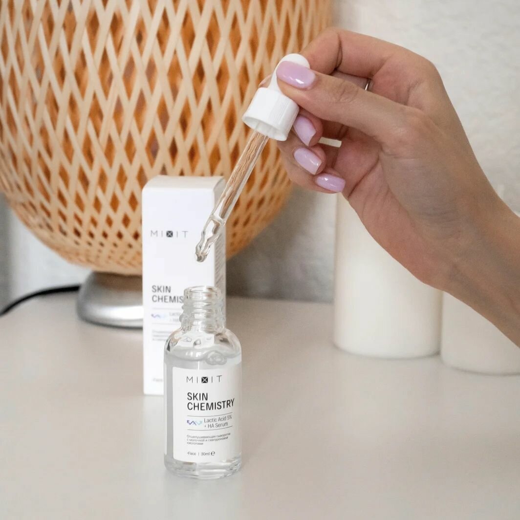 10 цен на MIXIT Сыворотка для лица MIXIT Skin Chemistry с молочной и гиалуроновой кислотой отшелушивающая, 30 мл