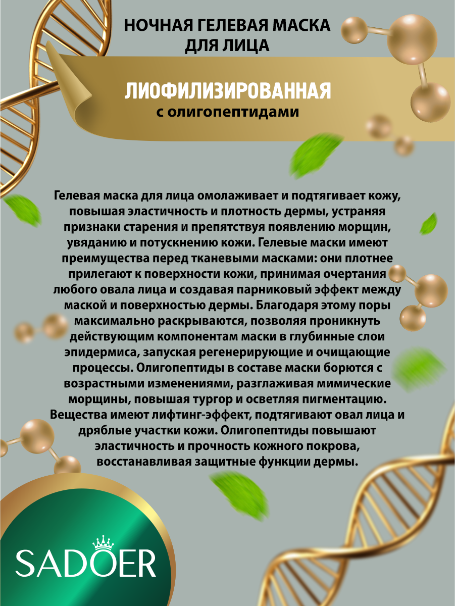 Леофилизированная ночная гелевая маска для лица Sadoer с олигопептидами 20 шт по 4гр х 2 уп информация: