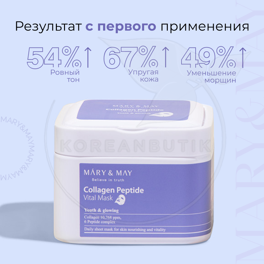 10 цен на Подарочный набор тканевых масок c пептидами | Mary&May Collagen Peptide Vital Mask 30ea