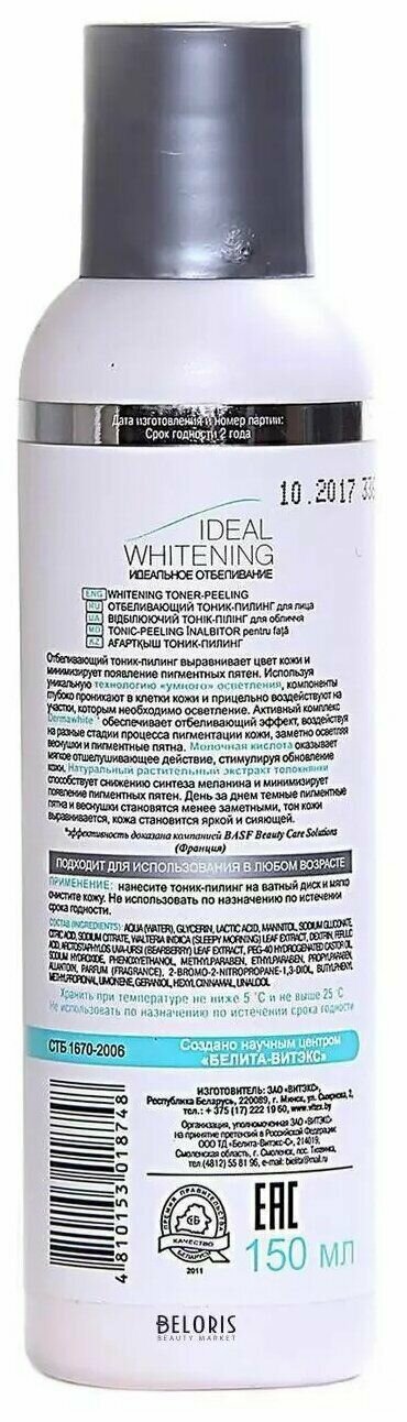 Витэкс тоник-пилинг для лица Ideal Whitening Отбеливающий Против веснушек и пигментных пятен, 150 мл информация: