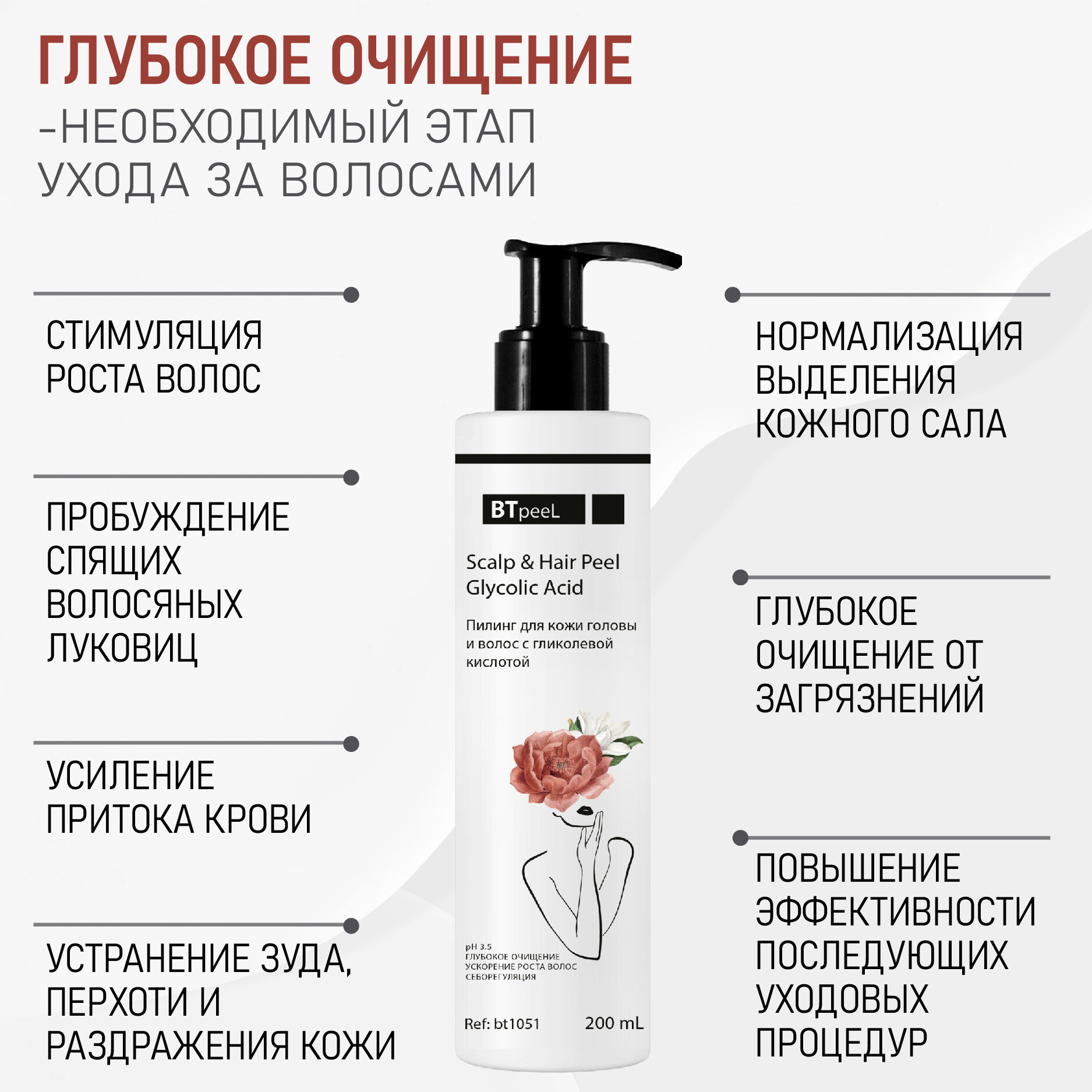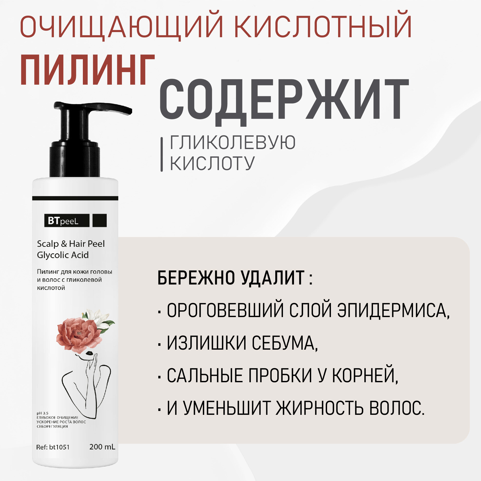 10 цен на Пилинг для кожи головы и волос себорегулирующий с гликолевой кислотой BTpeeL, 200 мл