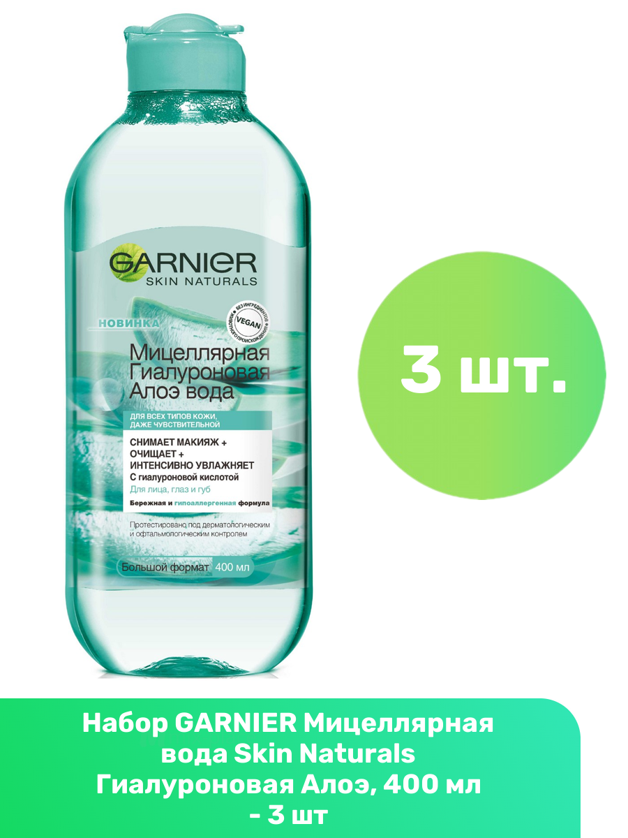 GARNIER Мицеллярная вода Skin Naturals Гиалуроновая Алоэ, 400 мл - 3 шт информация: