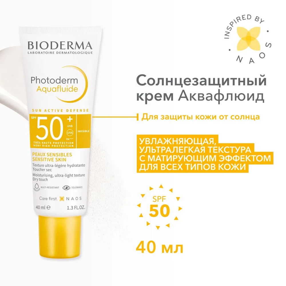 Photoderm Солнцезащитный крем аквафлюид SPF50+ 40 мл, Bioderma информация: