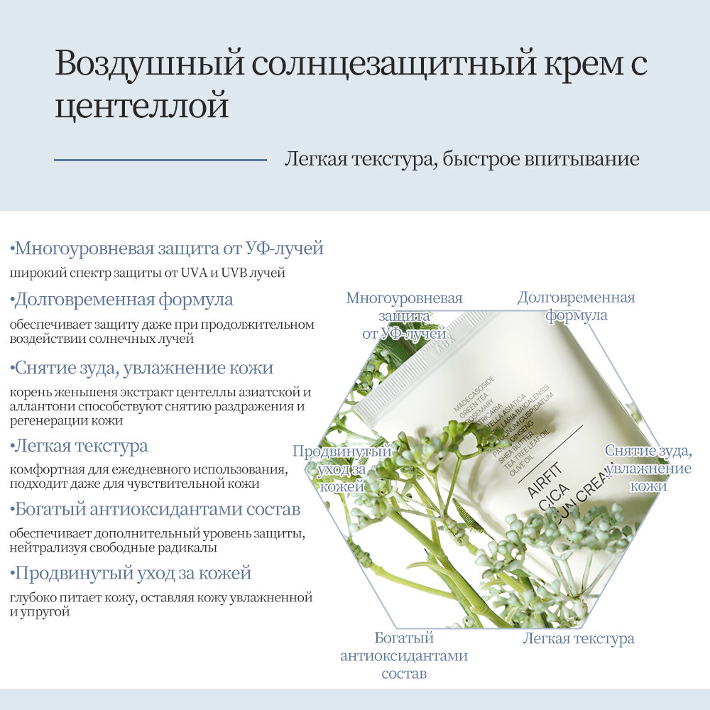 10 цен на Солнцезащитный крем для лица с центеллой азиатской Bueno+ «AIR FIT CICA SUN CREAM» SPF 50+ PA++++, 50 гр.