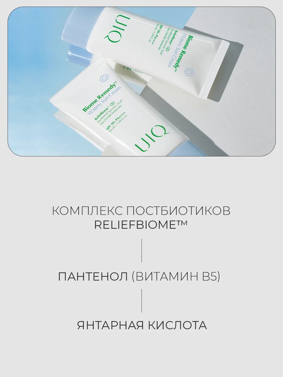 Легкий увлажняющий солнцезащитный крем с постбиотиками UIQ SPF50 Biome Remedy™ Watery Sun Cream 50 мл информация: