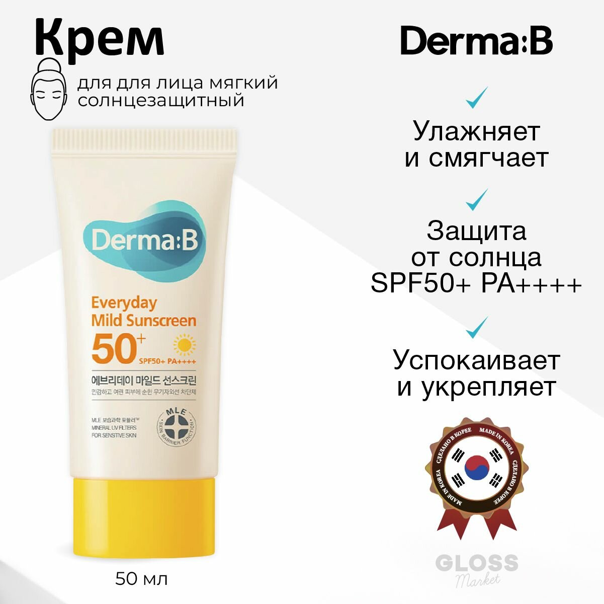 10 цен на Derma:B Мягкий солнцезащитный крем на каждый день Everyday Mild Sunscreen SPF50+ PA++ 50 мл