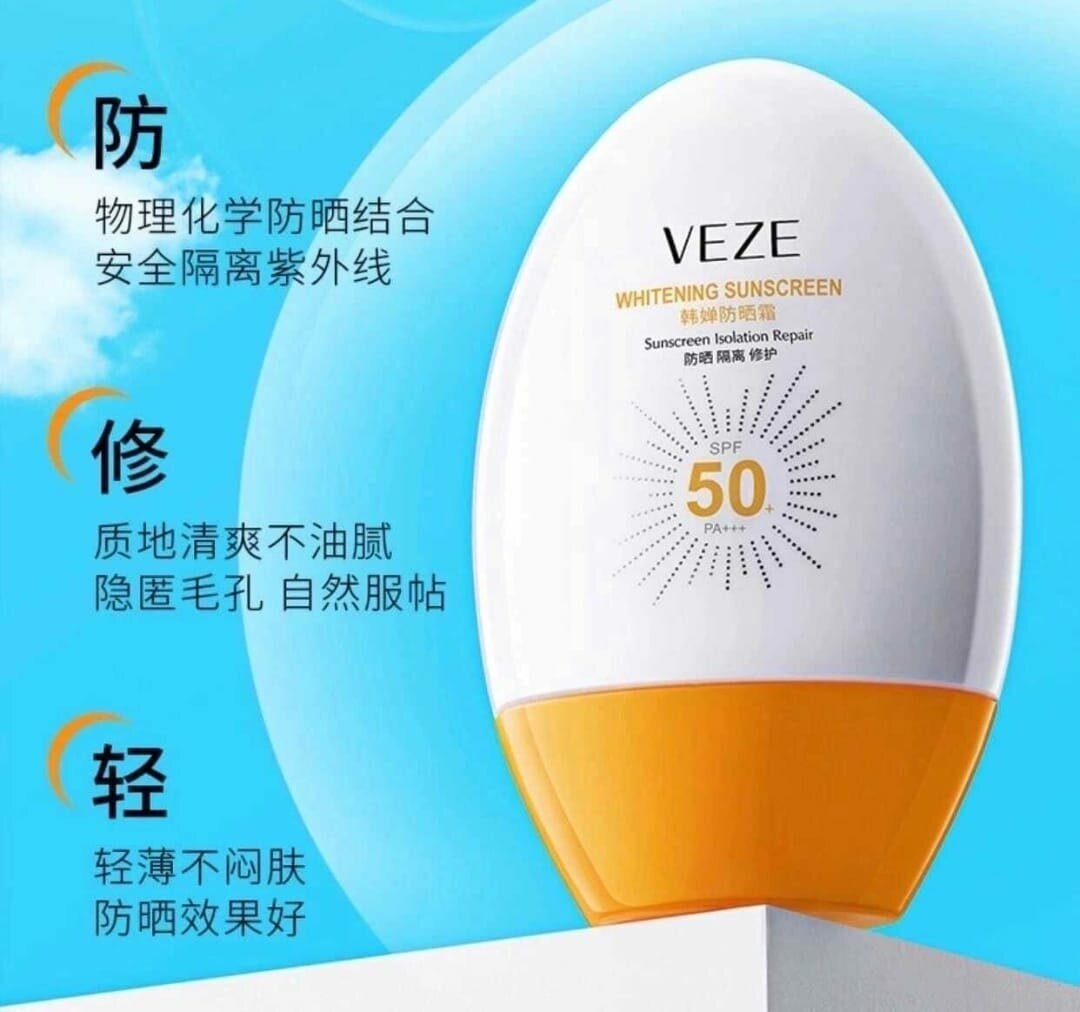 VEZE Солнцезащитный отбеливающий крем Whitening Sunscreen SPF50 глубокое Увлажнение и Защита кожи от солнечных лучей PA++ информация: