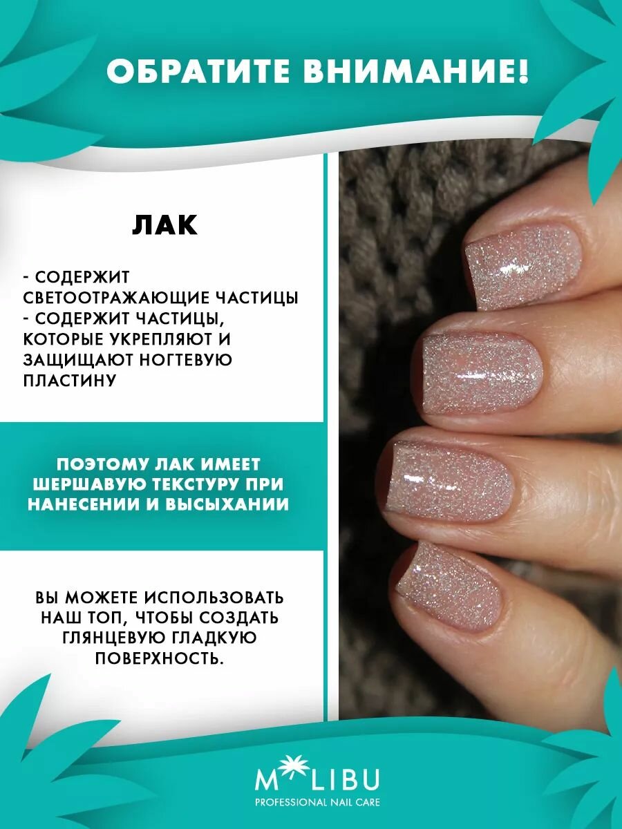 Лечебный Лак Для Ногтей Светоотражающий Укрепляющий Серебро MALIBU Gleam 505 ₽