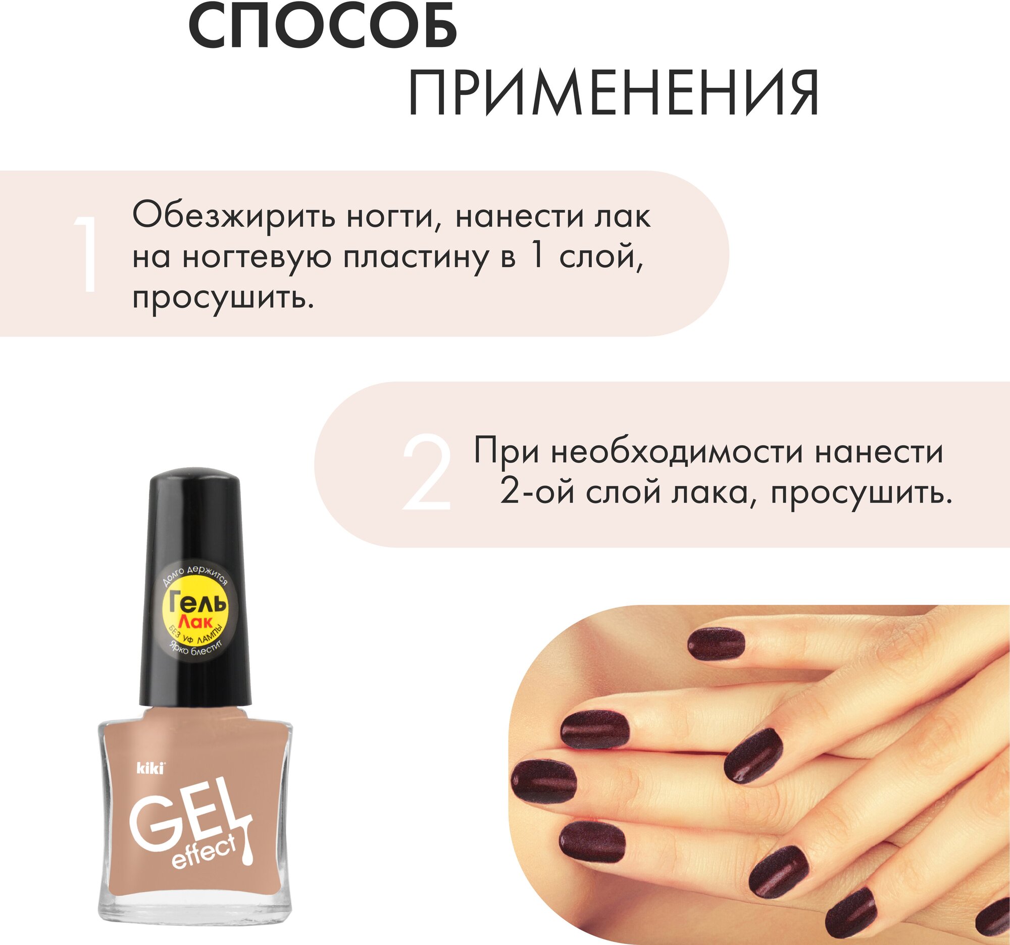 Лак для ногтей kiki Gel Effect тон 77 бежевый, с гелевым эффектом без уф-лампы, цветной глянцевый маникюр и педикюр, 6 мл 164 ₽