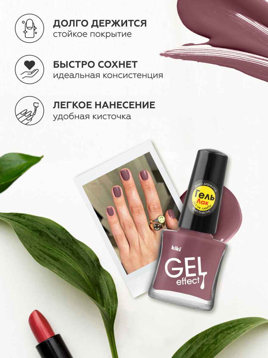 Лак для ногтей kiki Gel Effect тон 13 декаданс с гелевым эффектом без уф-лампы, цветной глянцевый маникюр и педикюр, кики, 6 мл 176 ₽