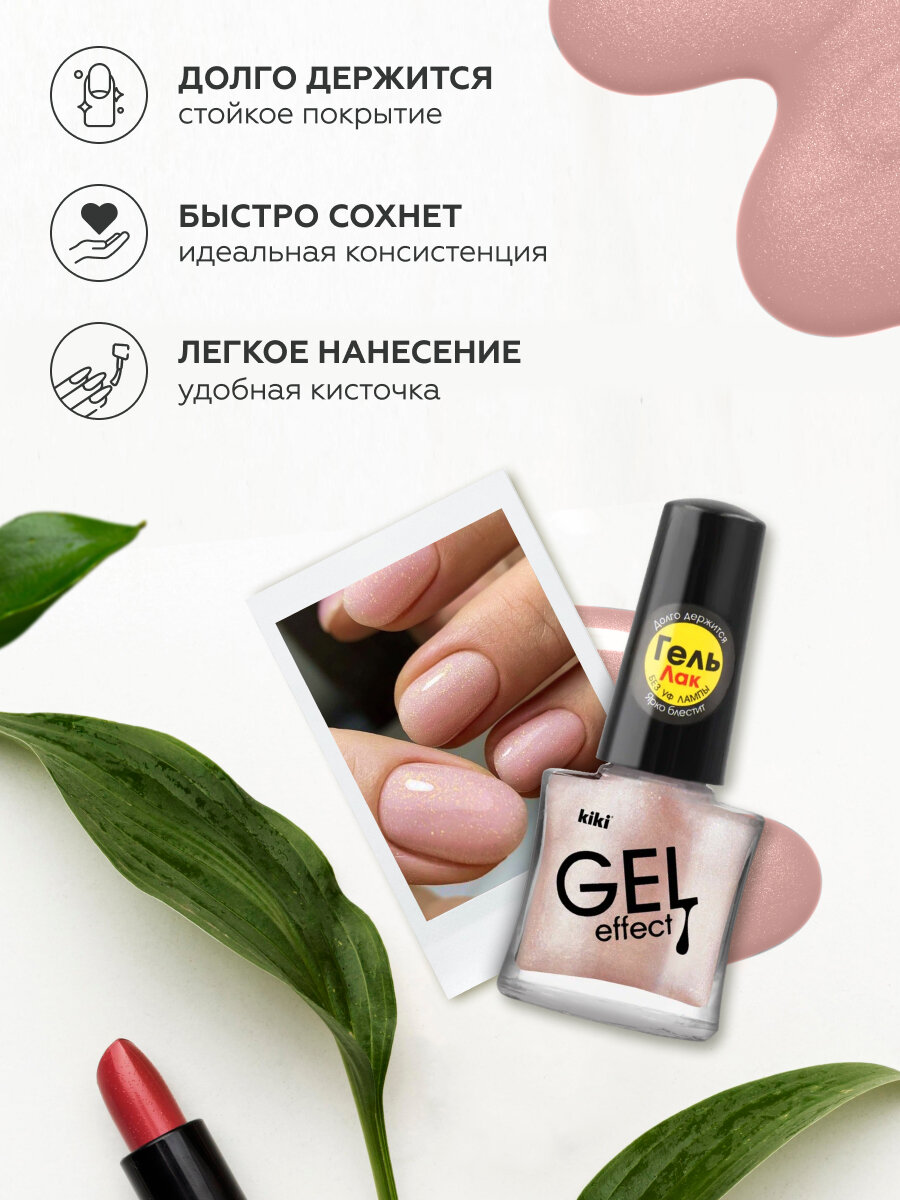Лак для ногтей kiki Gel Effect тон 81 бледно-розовый, с гелевым эффектом без уф-лампы, цветной глянцевый маникюр и педикюр с блестками, шиммером, 6 мл 162 ₽
